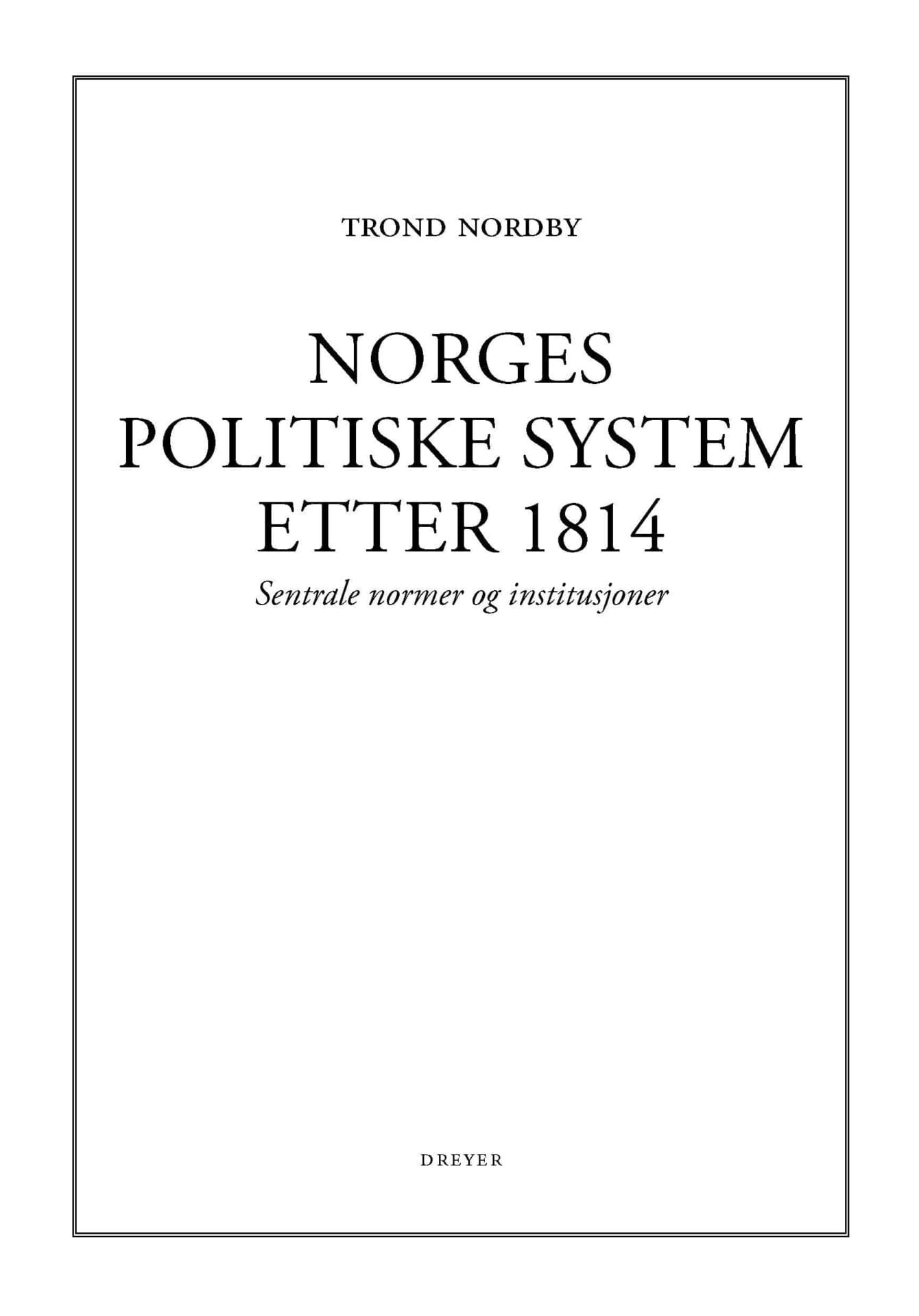 Norges politiske system etter 1814 handler om de sentrale politiske institusjoner og normer som har preget det politiske systemet fra 1814 og til i dag. Hovedvekten er lagt på relasjonen mellom storting og utøvende myndighet. Trond Nordby skriver inngående om Grunnloven, Stortingets indre organisering, stortingskontrollen og sentralforvaltningen. Institusjonell endring analyseres hovedsakelig i lys av en økonomisk-sosial kontekst. Nordby avviser blant annet gammel lære om når parlamentarismen vant fram, hva det betød for forholdet mellom storting og den utøvende myndighet. Under parlamentarismen blir den løpende maktkampen mellom de politiske statsmakter avgjort av styrkeforholdet mellom opposisjon og regjering samt dens grunnlag i Stortinget. Ut over dette har Stortinget i nyere tid både mistet makt og blitt langt mektigere. Blant annet har de folkevalgte trukket seg tilbake som lovgiver takket være frivillig liberalisering og som følge av tilknytningen til EU-systemet gjennom EØS-avtalen. På den andre siden har Stortinget siden 1990-tallet trappet opp kontrollen og tatt over større deler av det som tradisjonelt lå under domenet til utøvende myndighet.